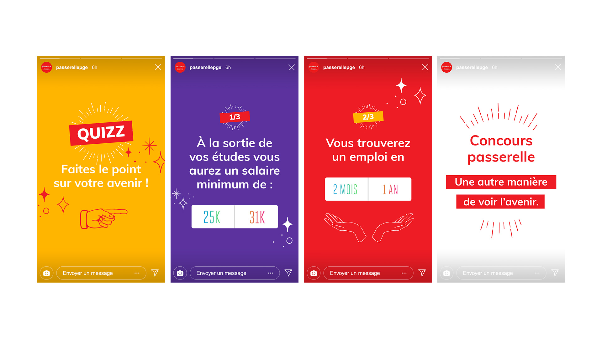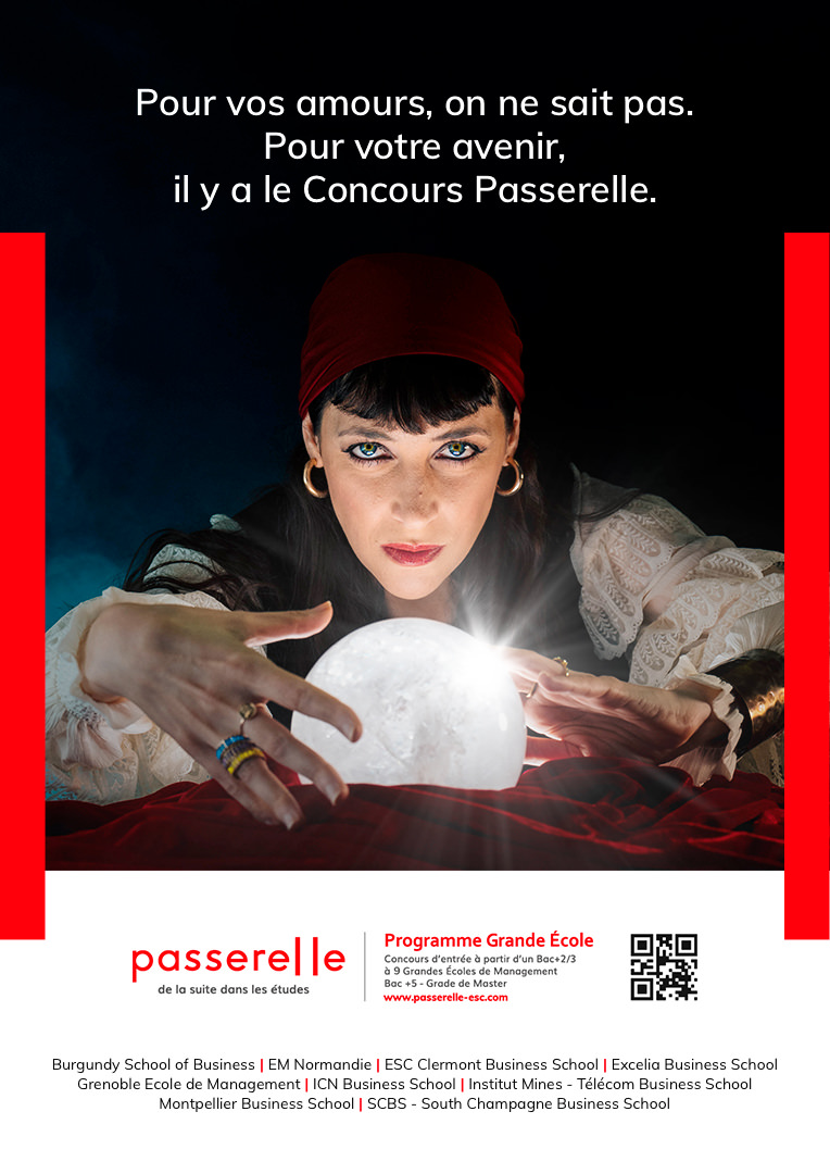 Passerelle, the admission competition to 9 Grandes Écoles de Management, accessible to all student profiles after a bac +2 or a bac +3, desire a strong and quirky creative concept to convince students to register for the competition .