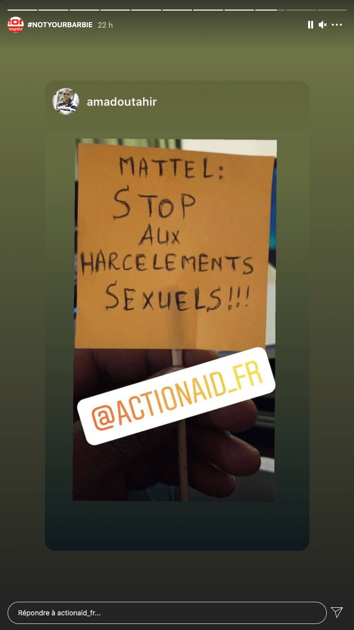 Action Aid est une ONG qui soutient depuis 1983 les hommes et les femmes dans la lutte pour leurs droits économiques, sociaux et culturels. Après avoir été alertée sur les violences sexuelles subies par les ouvrières dans les usines Mattel, l’ONG se mobilise aux côtés de Sweet Punk pour dénoncer ces comportements intolérables, avertir l’opinion public et faire réagir le fabricant de jouets afin de venir en aide à ces femmes harcelées.