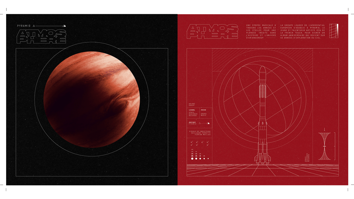 Atmosphère est un véritable EP, bijou d’électronique, retraçant l’épopée d’Ariane. Les différents morceaux racontent chronologiquement les grandes étapes qui ont permis l’élévation de la marque. De Vision à Space echo, la musique retranscrit le génie humain, l’humilité, la passion et la témérité qui ont permis de lancer Ariane. De ce fameux 24 décembre 1979 jusqu’aux projets d’avenir : to the moon and beyond.