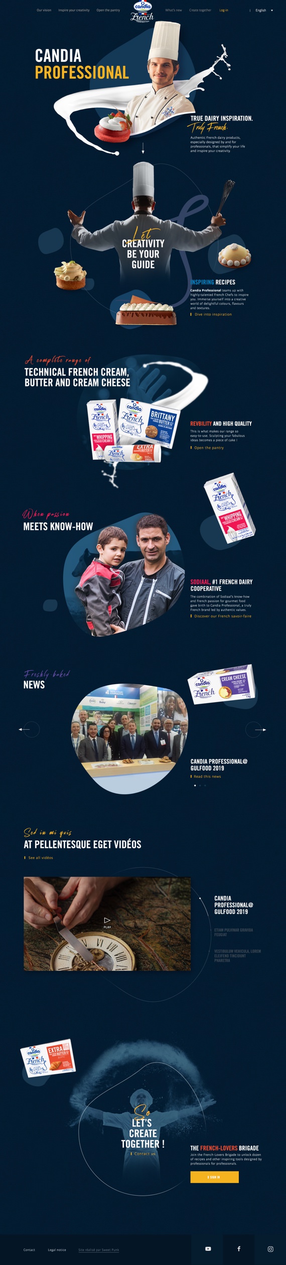 Avec la conviction que la marque possède tous les ingrédients pour devenir un top of mind de la sphère culinaire, Sweet Punk repense la promesse de marque de l’annonceur français. En s’appuyant sur son sex appeal, Candia Professional se positionne comme un bouillon de créativité made in France pour les professionnels du monde entier. Plus qu’un prestataire, la marque se transforme en un véritable partenaire créatif.