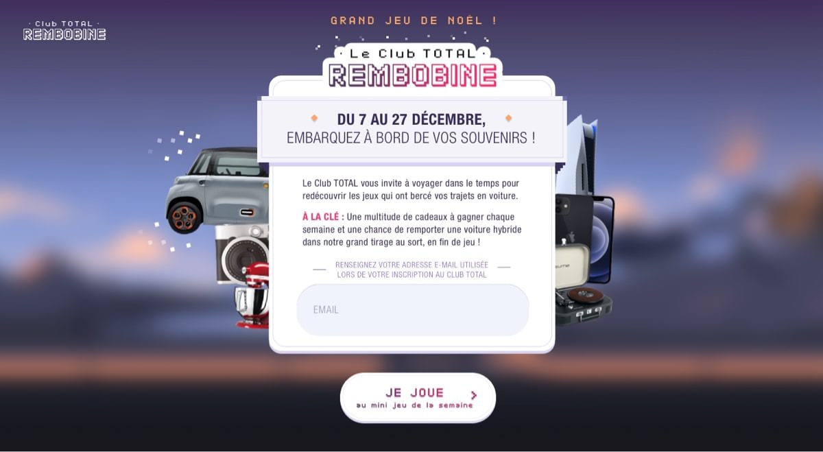 Octobre 2020, le programme de fidélité Club TOTAL fait peau neuve, faisant le plein de nouveautés. Les fêtes de fin d’années sont donc une occasion idéale pour les promouvoir mais aussi et surtout pour récompenser et animer la communauté des clubistes, le tout dans un univers festif et amusant.