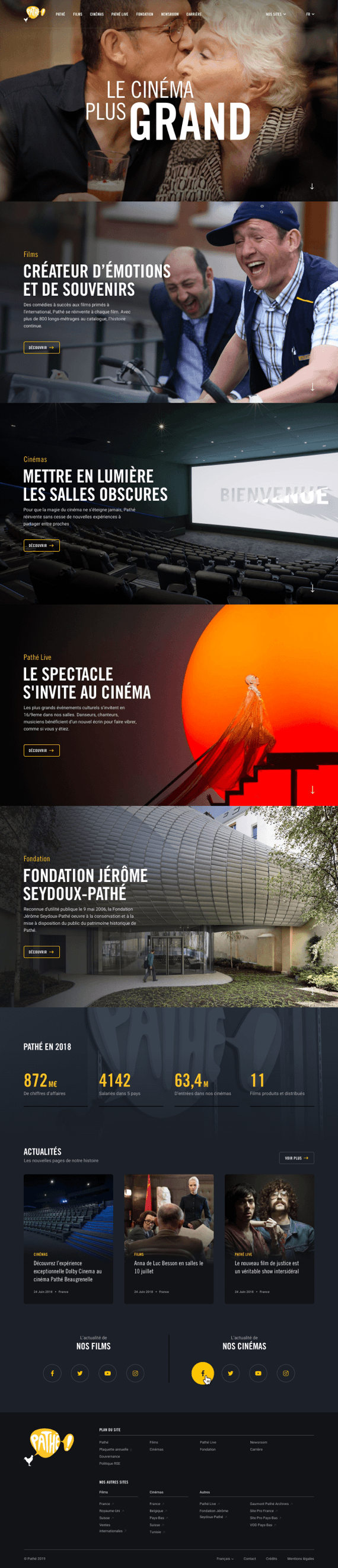 Textes courts et accrocheurs. Visuels de qualité soigneusement sélectionnés. Vidéos fullscreen. Le nouveau site Pathé plonge les internautes dans une nouvelle dimension, dans un univers purement cinématographique.L’immersion laisse place au pragmatisme. La navigation est fluide, grâce à l’utilisation de la technologie dite AJAX permettant de naviguer entre les pages sans rechargement. Le site est vivant, s’inspirant du design émotionnel. L’expérience est nouvelle, agréable et mémorable.