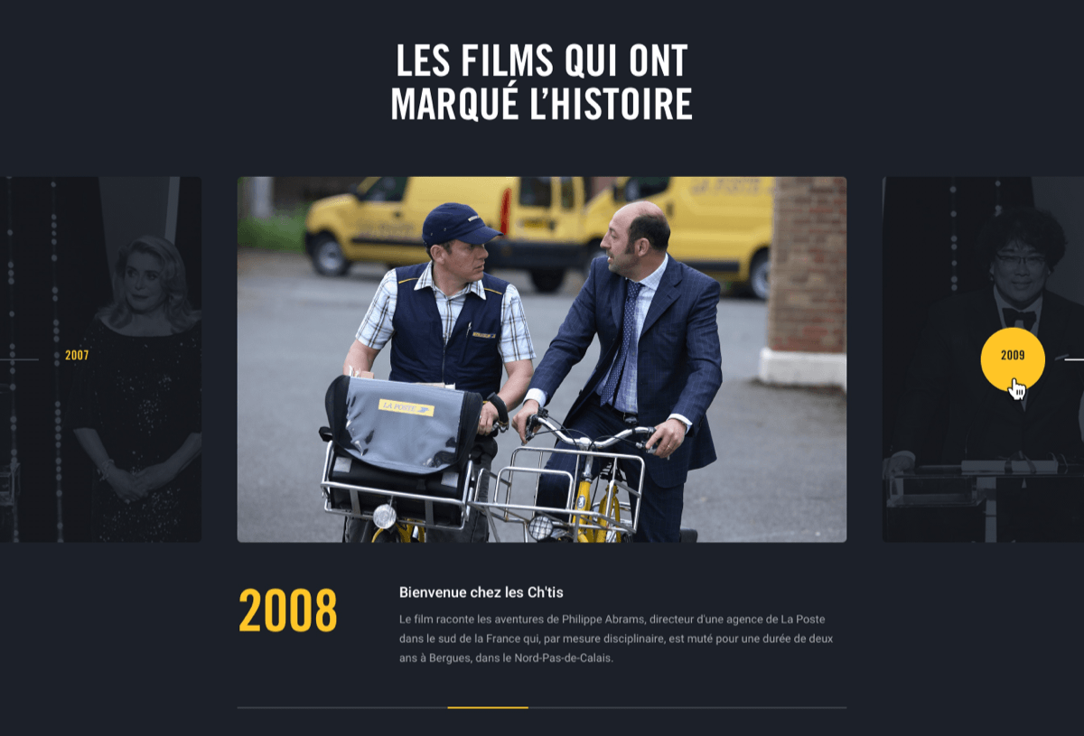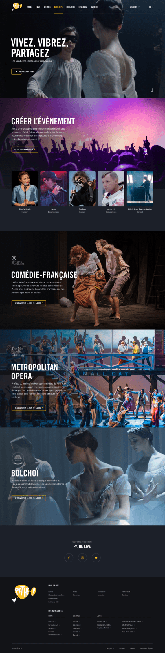 La vision Pathé, propre à l’esprit avant-gardiste et créatif du cinéma français, doit vivre tant sur le fond que sur la forme. Sweet Punk propose alors à ce géant du cinéma de se revendiquer en tant que marque et de faire rayonner son nom à travers son histoire : l’histoire Pathé, son unicité. Il faut aller au-delà du site corporate et raconter Pathé sous le prisme de l’émotion en offrant les bonnes passerelles dans leur écosystème digital.