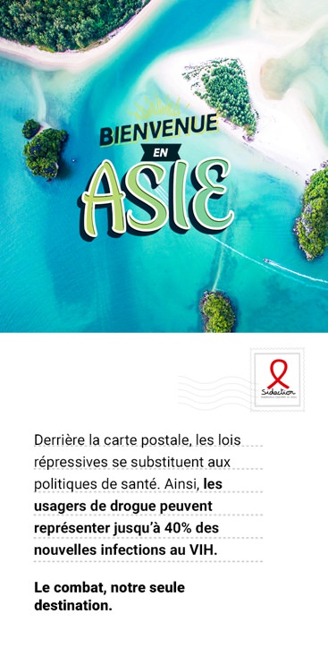 Pour beaucoup, le sida est une maladie qui touche principalement le continent Africain. Pour contrer les idées reçues, nous mettons en avant à travers des cartes postales des destinations connues pour leur tourisme, mais pas pour leurs séropositifs.