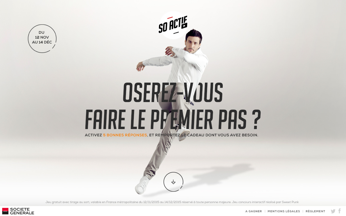 À l’occasion du lancement de So Actif, plateforme de conseils et d’informations destinée aux jeunes actifs, Société Générale a confié à Sweet Punk la stratégie de lancement, avec notamment pour défi de frapper un grand coup pour faire venir les nouveaux professionnels sur le site So Actif.